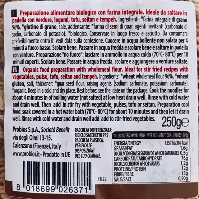 Noodles molto buoni che si cuociono rapidamente. Mantengono una bella consistenza sotto i denti e il sapore di integrale si sente. Non so un tubo di cucina orientale 😆😆😆 quindi ho provato a condirli con cubetti di tempeh fatti in padella con alga in polvere e salsa di soia…boh 😂😂😂. Nel complesso però il risultato è stato buono! Li ho comprati su Macrolibrarsi e la sfiga voluto che la maggior parte dei noodles (seccati a forma di blocchetti) fosse disintegrata e quindi li ho fatti in brodo con del tofu tipo pastina.