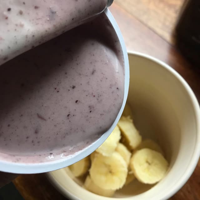 Tiene una consistencia más bien liquida, en mi opinión es para comer con cereales o fruta. Se siente bastante el sabor a coco, y en menos medida los frutos del bosque.