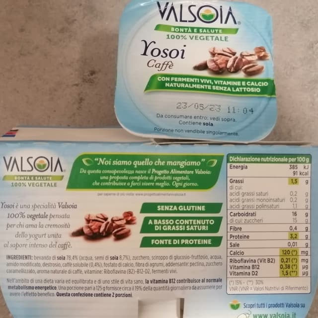Yogurt di soia al caffè, stranamente non è improponibilmente dolce come tutti gli altri di questa marca, l'ho trovato abbastanza gradevole (anche se sempre un po' troppo zuccherato per i miei gusti). La consistenza è cremosa e molto gradevole.
