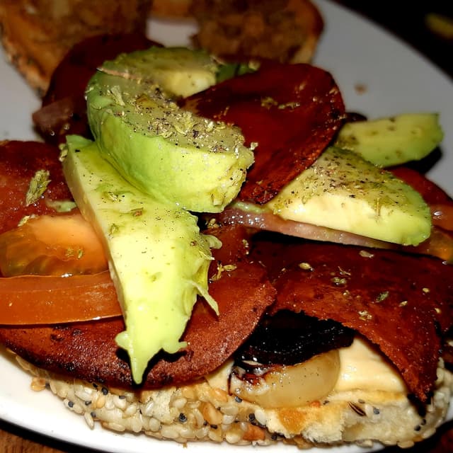 Yves veggie bacon strips are smoky, they crisp up nicely on the frying pan, and can be incorporated into any meal of the day. Here I have it on a delicious sandwich. You can always chop it up after you crisped it up and add it to a creamy vegan pasta or vegan cesar salad. It's a good go-to veggie product. Reasonably priced too. #veganin2020