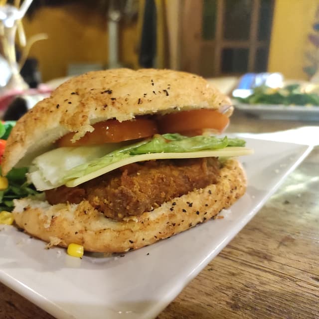 Great burger with a lot of texture and flavours. Made a nice lunch with lettuce and tomato.