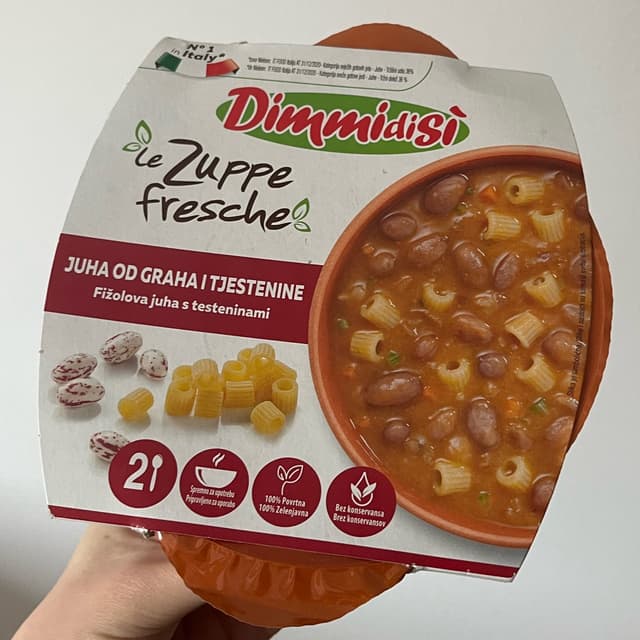 Pasta e fagioli pronta, buona, anche se la pasta è un po' troppo molle. Comoda, viene pronta in 3/4 minuti.