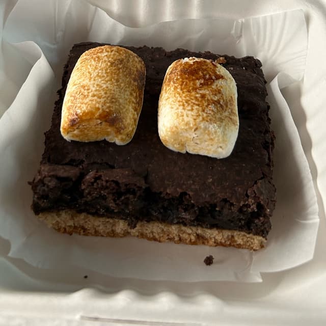 Delicious s’mores dark chocolate brownie. This was very sweet and the marshmallows were slightly fired which did give this a camp out smoky taste. This was way too expensive though.