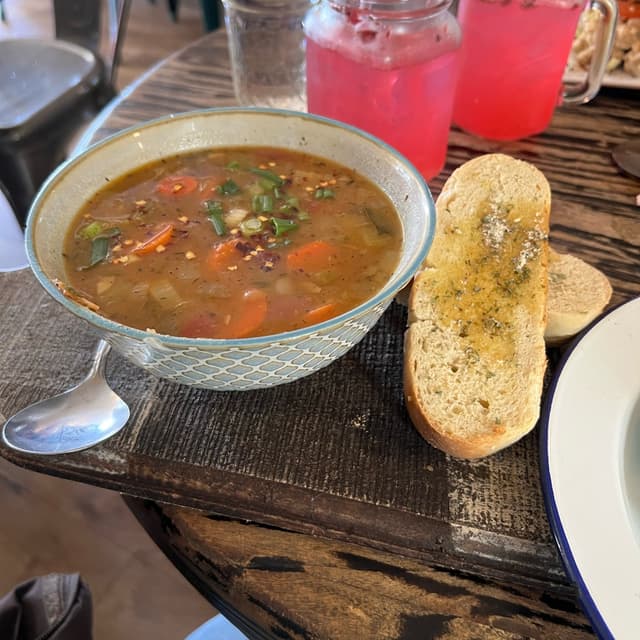 Wow and yummy soup on a cold day . So warm and comforting I love how they left big carrot pieces and the spices were spot on would definitely have again it was served with 2 slices if yummy garlic bread for $12 .. love this place. #veganisnotscary #allvegancafe #impact