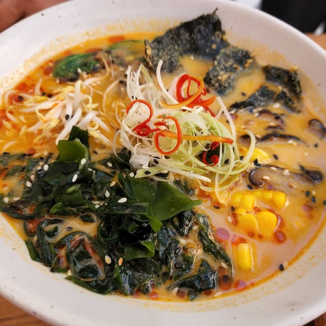 Another must-try in this wonderful vegan place. Its my 3rd time here and I will never get sick of this place. Mild spice and your option to make it spicier. Everything you would want in a ramen is in here.