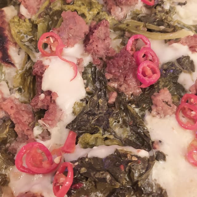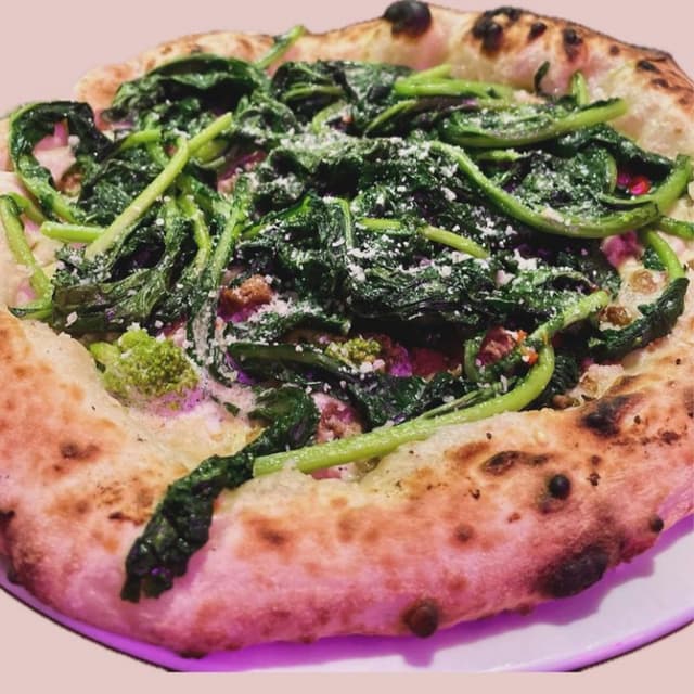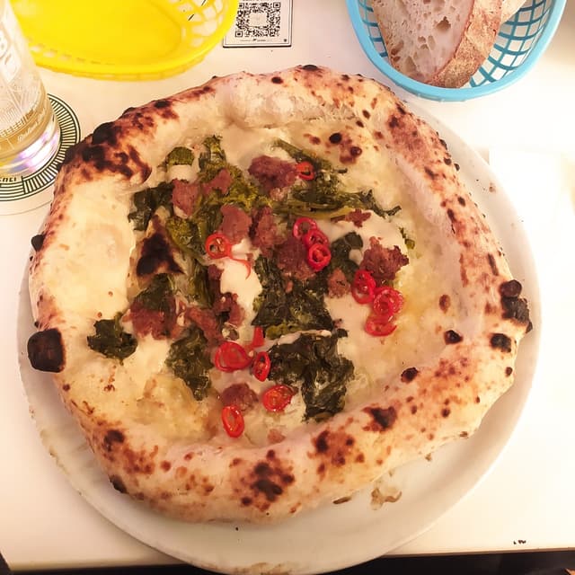 #friarielli aka #staengelkohl and #salsiccia made with #fennel , #chilli and white wine. A classical #pizzabianca 😋🌶️