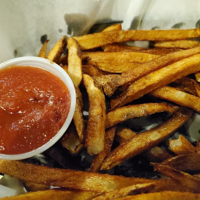 The fries were a bit soggy but the overall taste was good. They come with a choice of two sauces