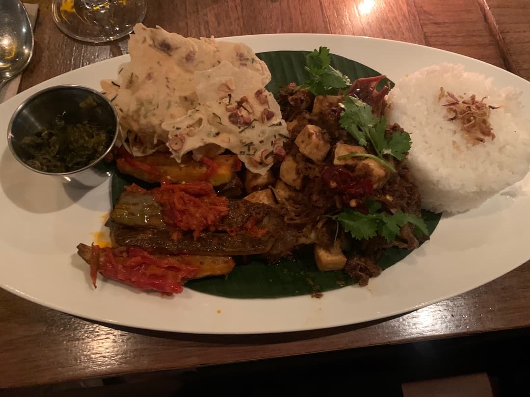 A very fragrant dish which is a bit too overpowering in my opinion. It’s a big portion but it was a bit too intense for me to finish. There’s eggplant, tofu, white rice and jackfruit rendang.