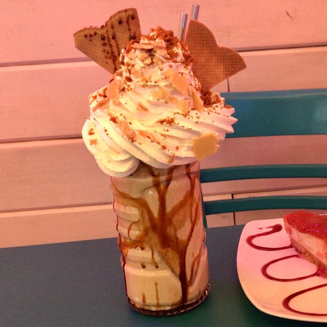 El batido en sí está muy bueno, los toppings también. Lo recomendamos mucho (incluso mi pareja omnívora), lo único que no nos convence es la nata, es demasiado densa y no termina de saber “a nata montada”. Lo demás está buenísimo y merece mucho la pena.