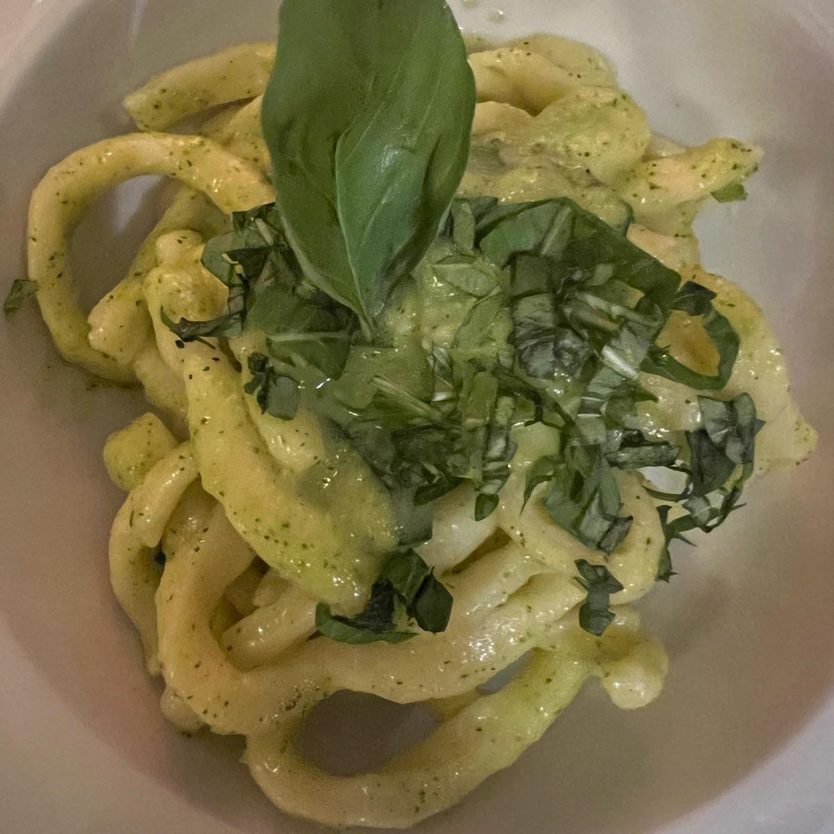 Spaghettoni caserecci tipici abruzzesi con crema di zucchine e basilico- gusto molto delicato