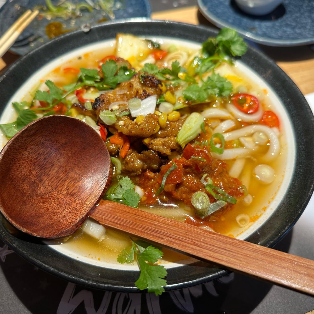 Great in all ways! Generous portion, perfect amount of chick’n, super tasty and nicely served. It could be a little less spicy and oily, but pretty fantastic all around.