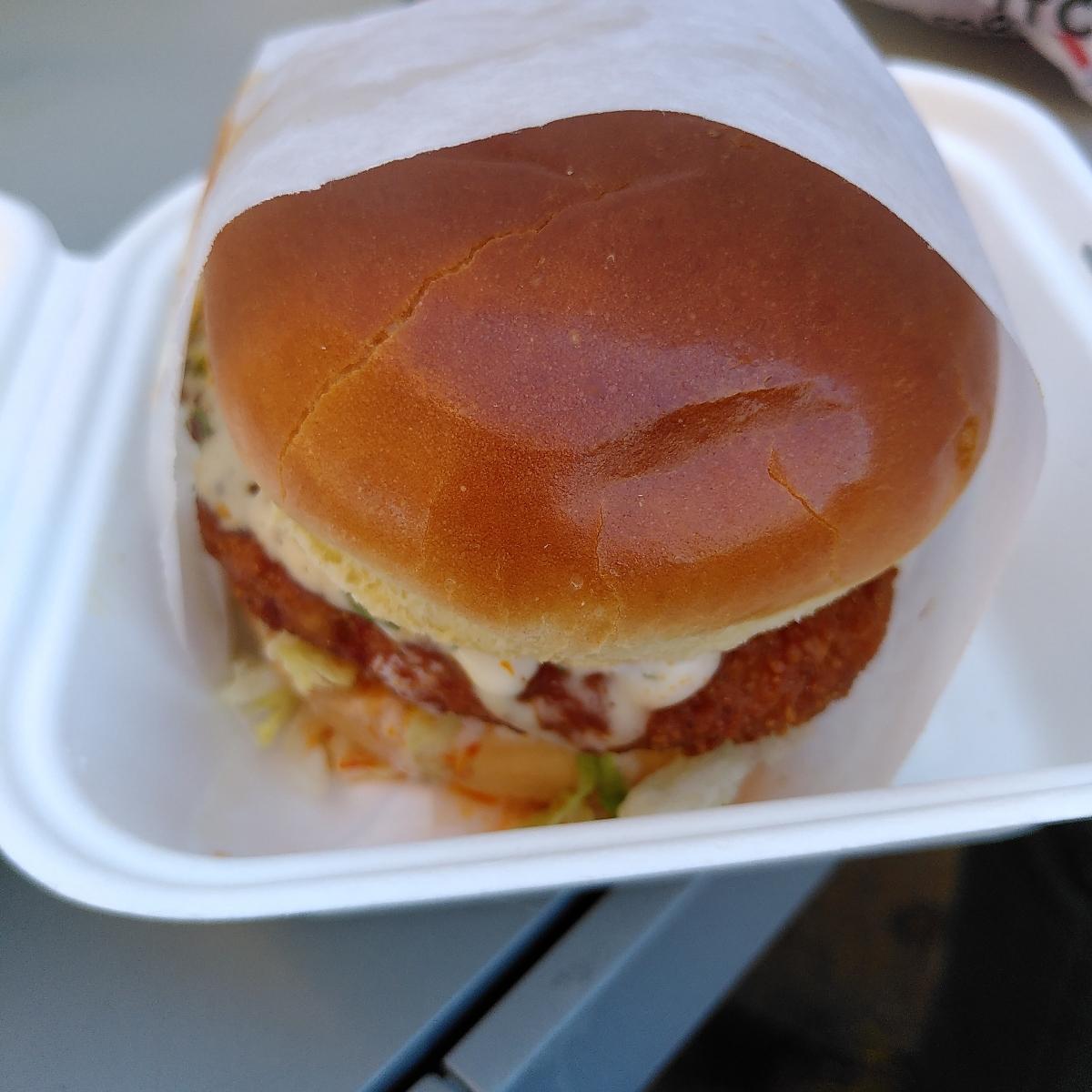 Vegan fried chicken incredibly tasty! With ranch, buffalo sauce, lettuce, tomato, pickles, in a brioche bun. The bun was a little too sweet for my taste but overall it was very good! 9.95$ (+tax)