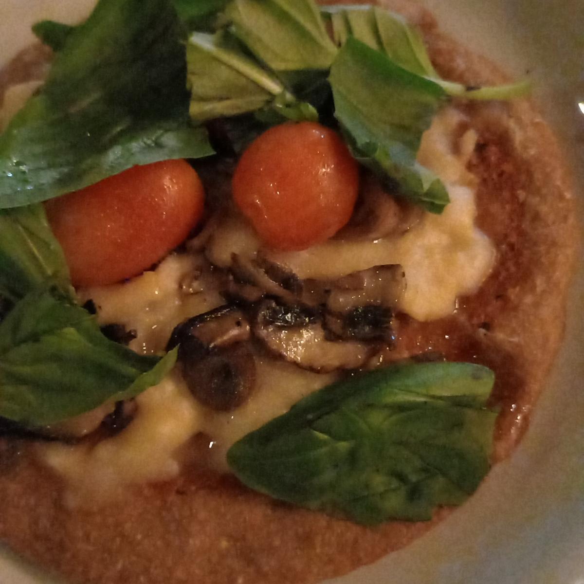 Muy rica, pero tamaño mini 🥲 si no era por la cerveza y el pan me quedaba con hambre.. El lugar es buena onda, pero esperamos un montón, se habían confundido y le pusieron queso especista a mi pizza 😑