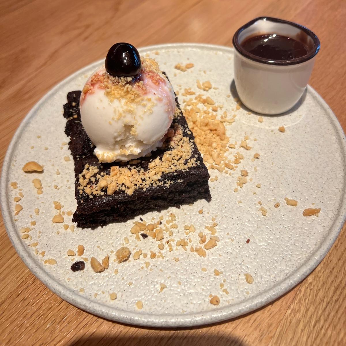 This was delicious. I love that the sauce came on the side and you could poured over the brownie was moist, and Rich the ice cream was a perfect him to vanilla in the chopped up peanuts made a really great add. I would highly recommend this for dessert definitely can shared after meal full with many choices. This is a great deserve to share with a non-vegan friend show them how easy and delicious and it is to eat cruelty free.