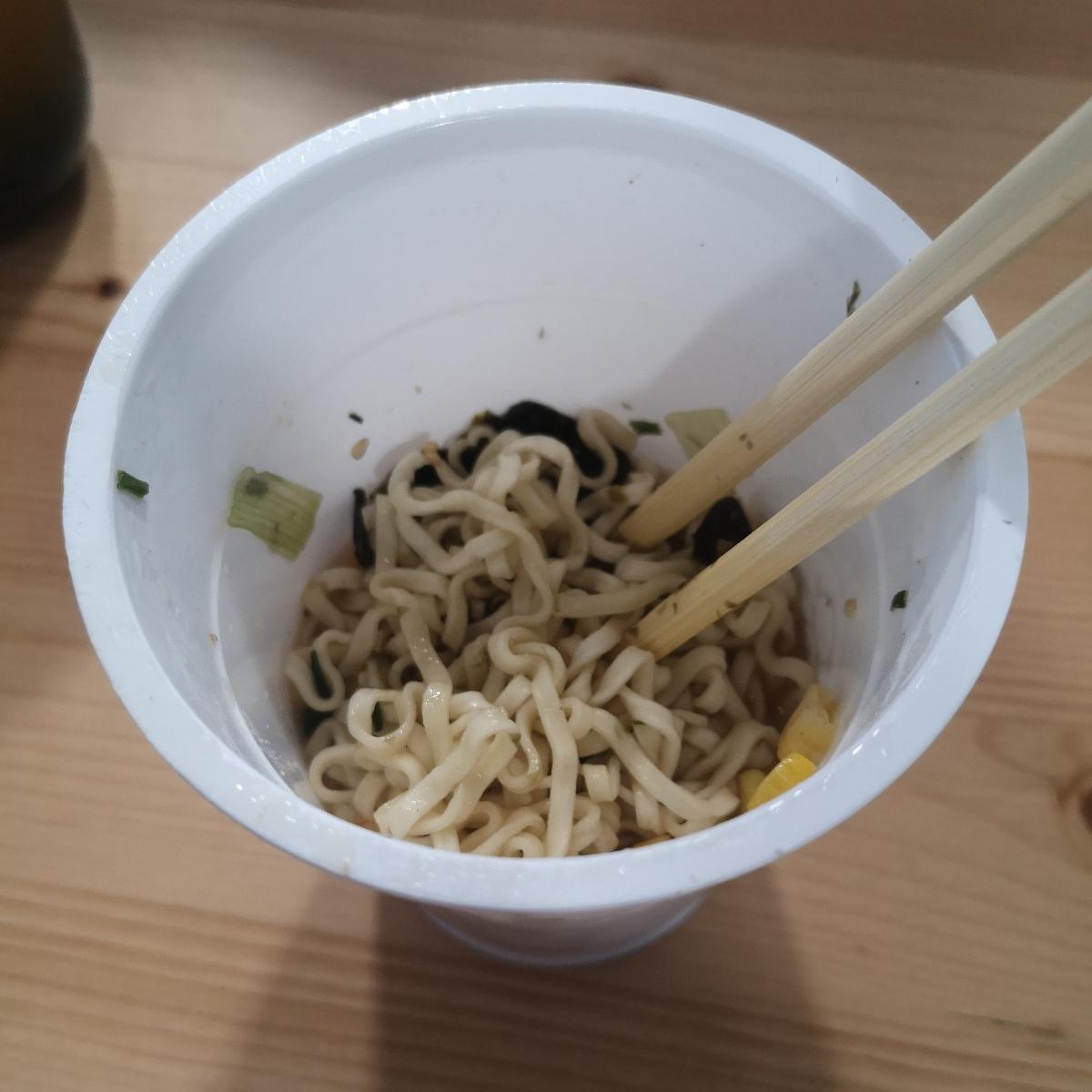 Non ho dimenticato di fare la foto e l'ho fatta metà piatto, mi è stato proprio portato così, per la modica cifra di 4.90 euro. Avevo chiesto se fosse vegano prima di ordinarlo, e la risposta era stata affermativa, per poi riceverlo al tavolo dicendomi che solitamente aggiungono alghe e uova per completare il piatto e nel mio caso non sapessero cosa mettere in quanto vegana (bho, le verdure? la sparo lì), e che la prossima volta metteranno altro. Basita. Gusto buono ma il ramen istantaneo si trova a 1 euro al supermercato