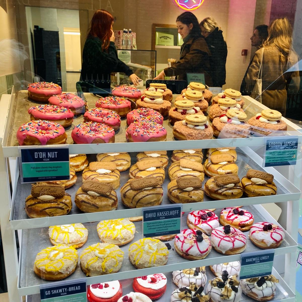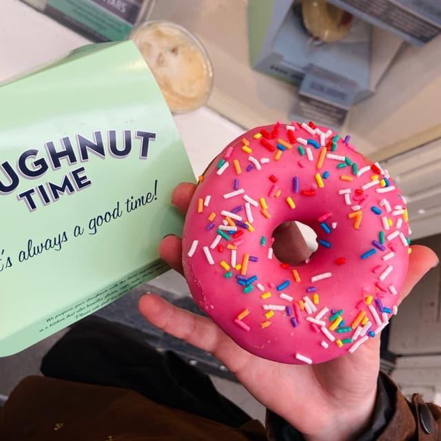 We weren’t even planning on going here but the window display caught our eye! This was yummy - a classic Simpsons pink sprinkle doughnut. 💗🍩 Big and fresh and doughy, though I definitely prefer the ones with fillings #dessert #donuts #donut #vegandoughnuts #bakery