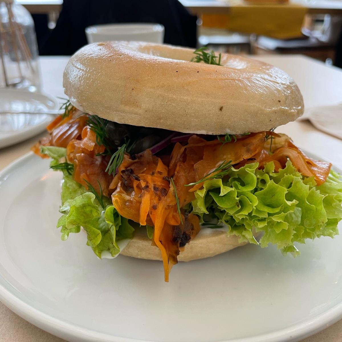 Nice breakfast place in Berlin. I got the salmon bagel, it was really filling for €6.90 and a €4 cheesecake