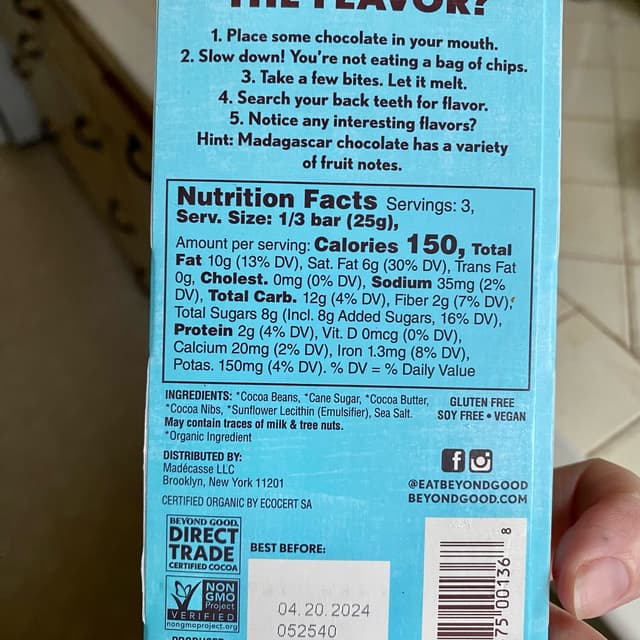 I love that this product is labeled vegan and that they source ingredients directly from the farmers. And it’s very tasty! I love cocoa nibs!