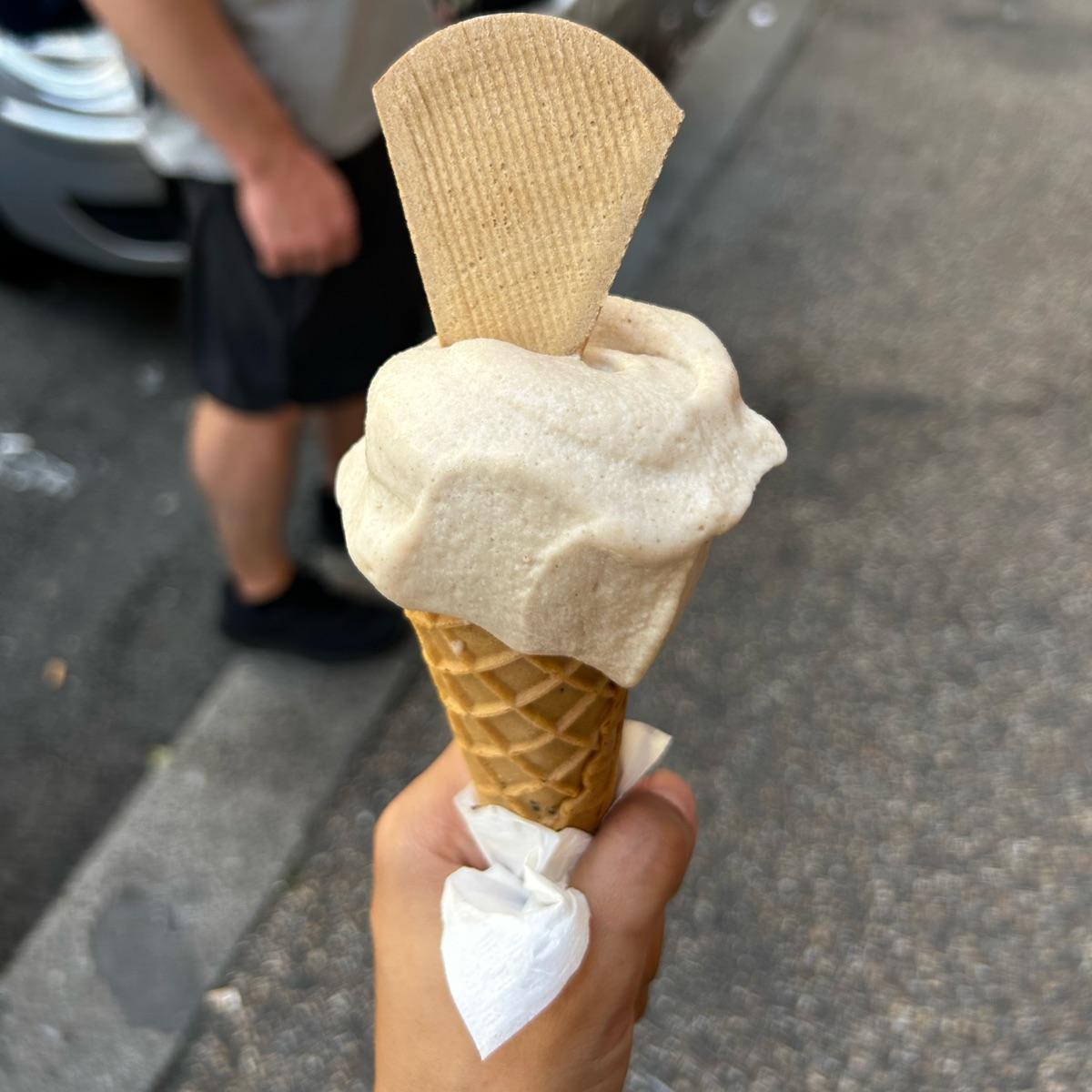 Two scoops of #hazlenut #gelato in a #vegancone ! It’s cool enough to find vegan gelato but to also get a vegan cone 🤯