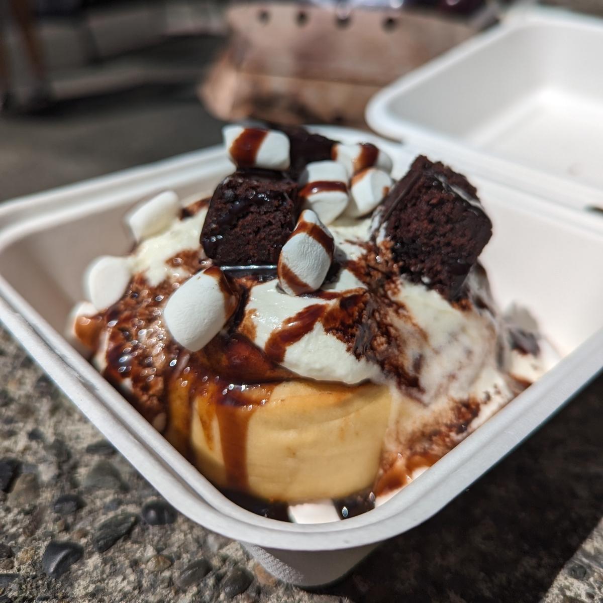 This is so good!!! The brownie bites are really fudge-y and chocolatey, while the cinnamon roll is so soft and fluffy! #chocoholic #cinnaholic #cinnamonrolls