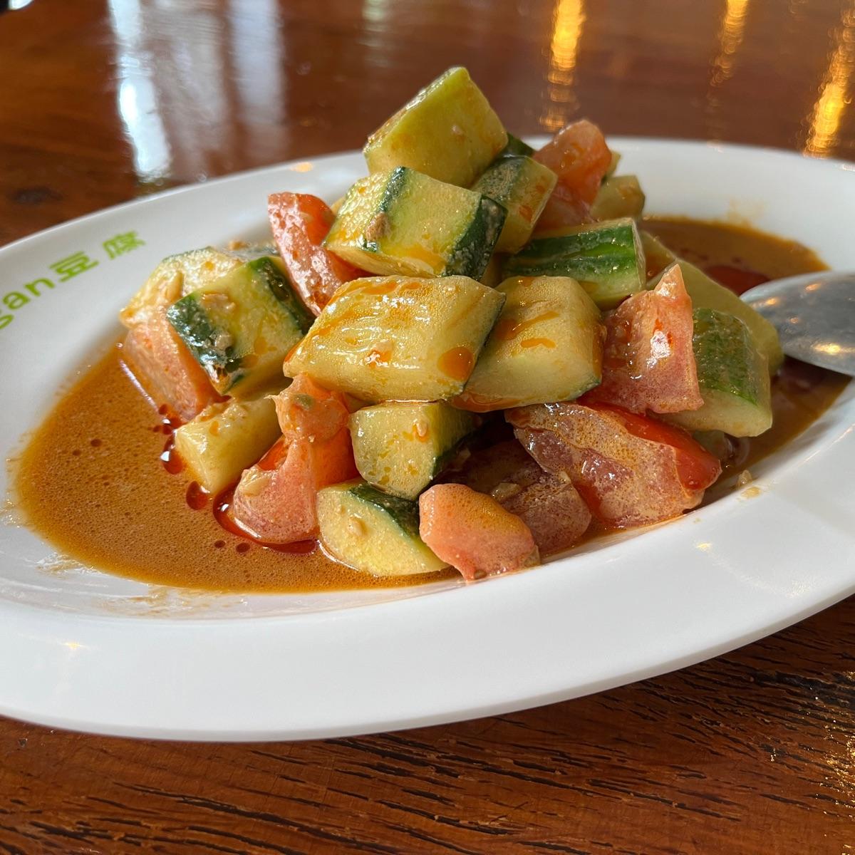🇨🇳🌱 All vegan Chinese restaurant in East London. This cucumber 🥒dish was sublime and right up my alley in a dreamy mildly 🌶️spicy sesame sauce. In retrospect I should have gotten rice 🍚to eat with the rest of that sauce. Aw shame. They would have frowned on that anyway, no? There were chunks of tomato too and it’s served cold. My colleague raved about this dish too. I would order this again for £7.90. 🤤 #chinesefood #chinese #salad #allveganrestaurant