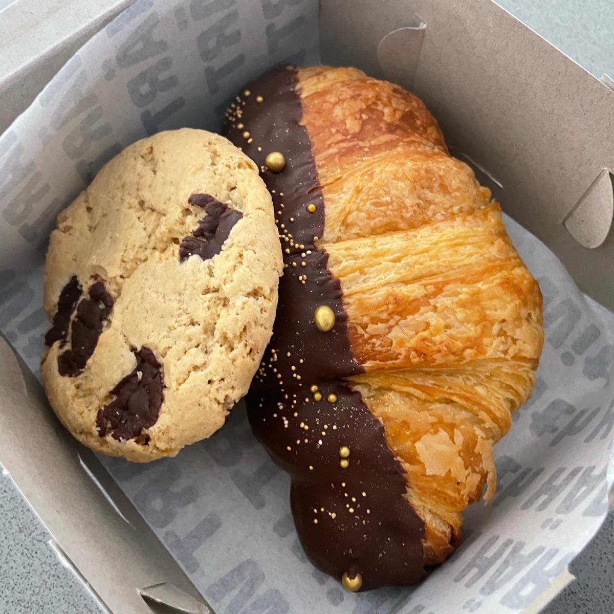 I was just happy to find a vegan croissant. Little did I know I would be tasting this beautiful, fresh, perfect, croissant with so many layers it looks like it must’ve taken hours. Then, when biting into it there’s a chocolate cream type filling that just made my day! It’s perfectly sweet and its just so nice. My words are failing me.