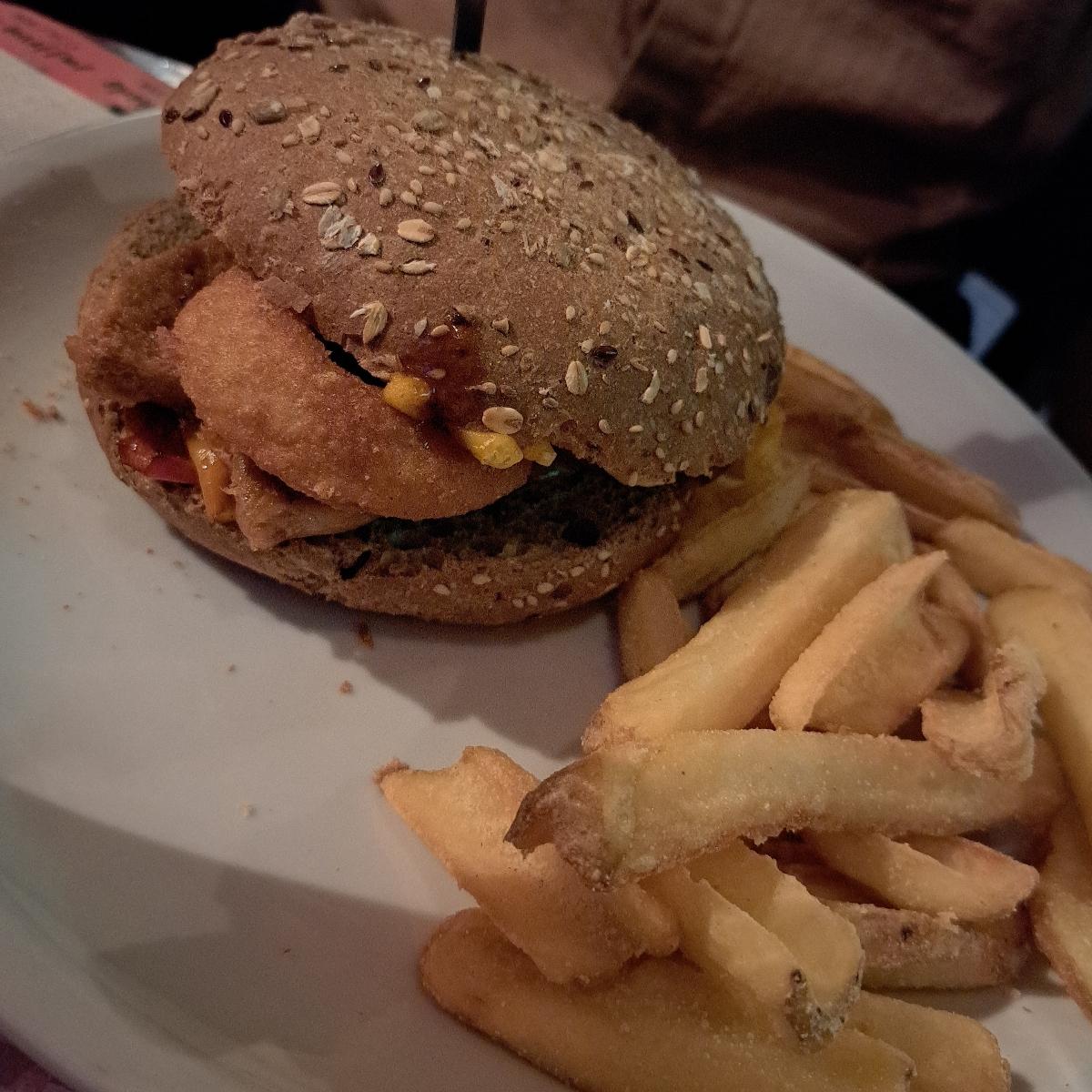 una vera bomba! i peperoni e le cipolle caramellate lo rendono davvero speciale. servito con patatine fritte