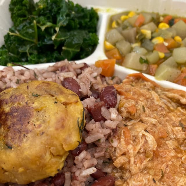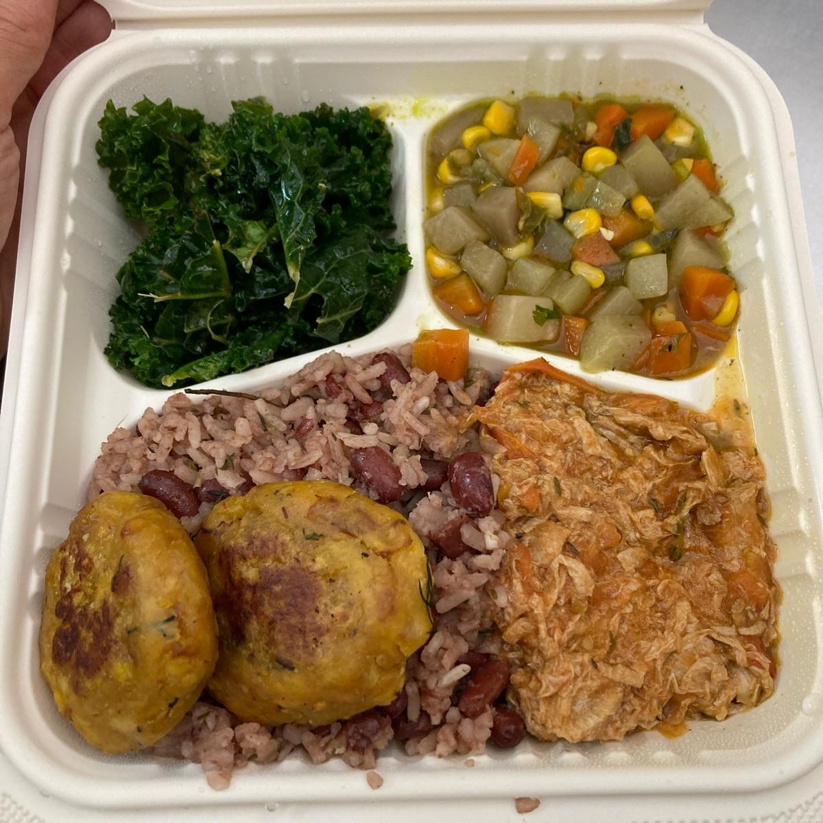 I cannot say enough how delicious this dish was. “Rice and beans” is the name of a very famous and delicious Costa Rican #caribbean dish, it may look simple but it’s #rice and #beans cooked in a very delicious and mildly #spicy sauce and spices. This dish also came with “pulled soy” in the same yummy sauce. Flavor and texture are absolutely delicious of everything in this dish. In the bottom left are the most delicious ripe #plantain patties. And the #picadillo is a mix of yummy veggies chopped up and mixed together with spices, very popular in #latinamerica. The #kale was perfect too and all this was just so tasty.