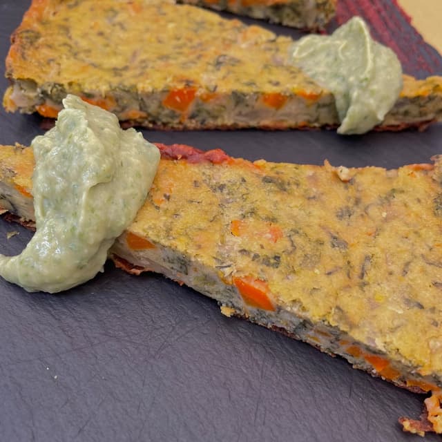 Buonissima farifrittata di ceci con cipolle, bietole, carote e crema di sedano e cannellini.