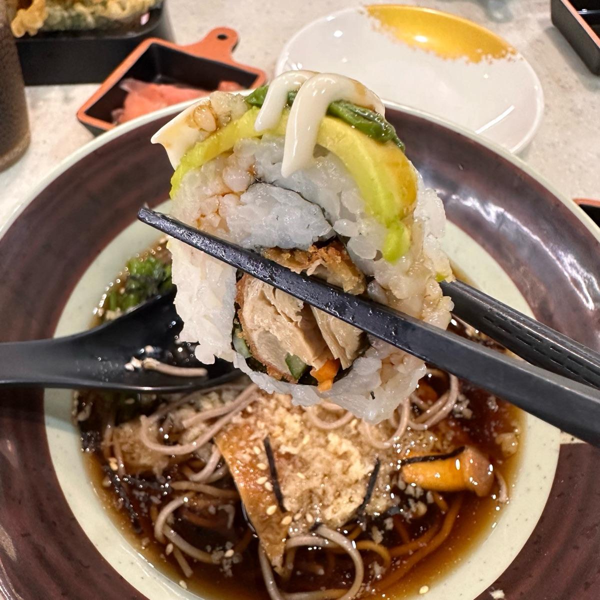 Avocado on #sushi is like pineapple on pizza 🍕 Totally valid and delicious 😎 They use the same #veganchicken / #beancurd filling in their NDP special https://www.abillion.com/dishes/saute-sushi-cereal-ebi-with-mango-10337740 so you know this is the real deal 💯 It’s so simple. Told ya that #veganisnotscary 😗
