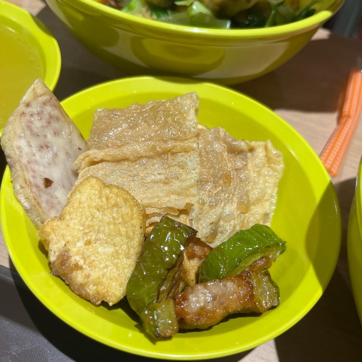 The YTF pieces are top notch. This set comes with taro slices, taukee, stuffed bitter gourd, taukwa, white radish, spinach and broccoli soup.