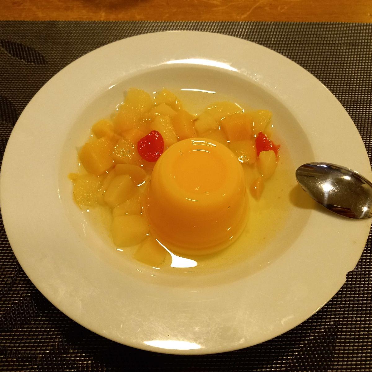 Me dieron este pudding como alternativa a lo que había en el menú. Hecho de mango.