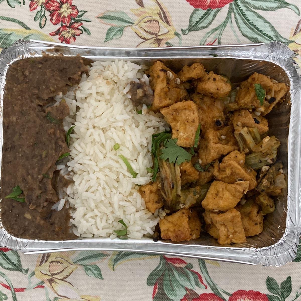 A alegria de receber minha marmitinha vegana 🤗 um tempero maravilhoso, quiabinho, um toque de coentro . Amo! @ranchodosgnomos #ranchodosgnomos #casadoconsolador 💙🌱🌎🐻🙌🏼