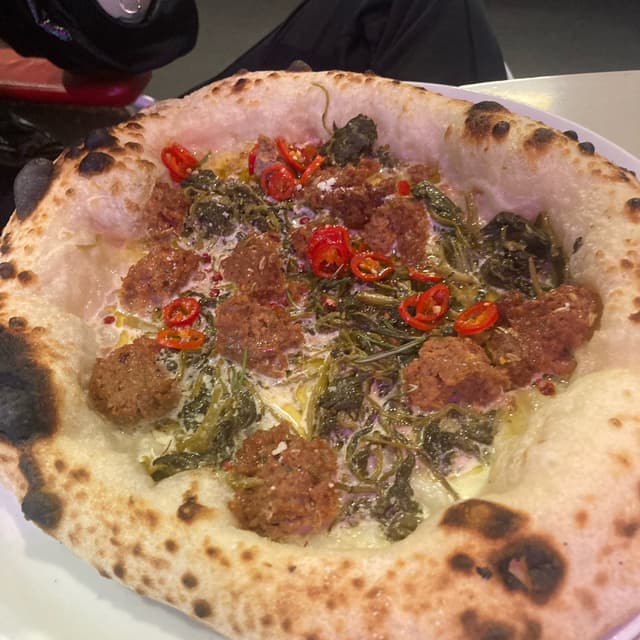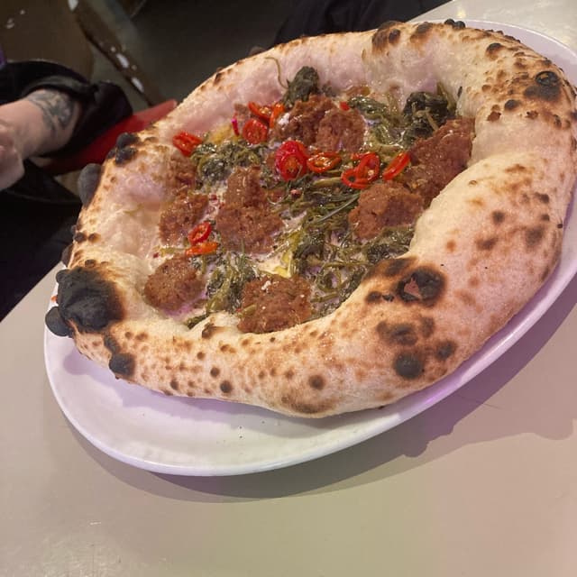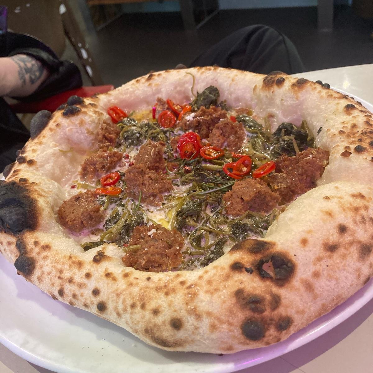 #friarielli aka #staengelkohl and #salsiccia made with #fennel , #chilli and white wine. A classical #pizzabianca 😋🌶️