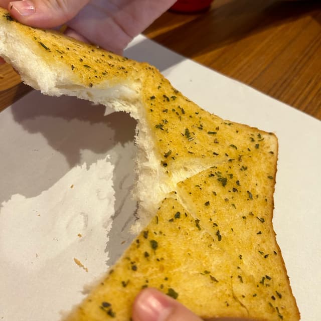 We were done eating our 3 desserts, when we noticed the smell of warm garlic bread. Well, we felt like we had to get some, as it had just come out of the oven. This #garlicbread used a thick-cut white bread and was slathered in buttery garlicky goodness🤤.
