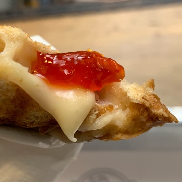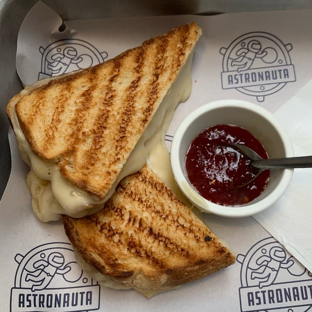 Maravilhoso queijo 🧀 quente 🥪, muito bem preparado, super quentinho, com muito, mas muuuuuiuito queijo 🧀 mega derretido, super tistadinho, saboroso, feito no capricho, servido com uma deliciosa geleia de pimenta 🌶️