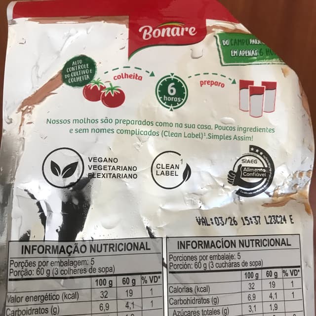 Sem adição de açúcares. Não contém gorduras e glúten.