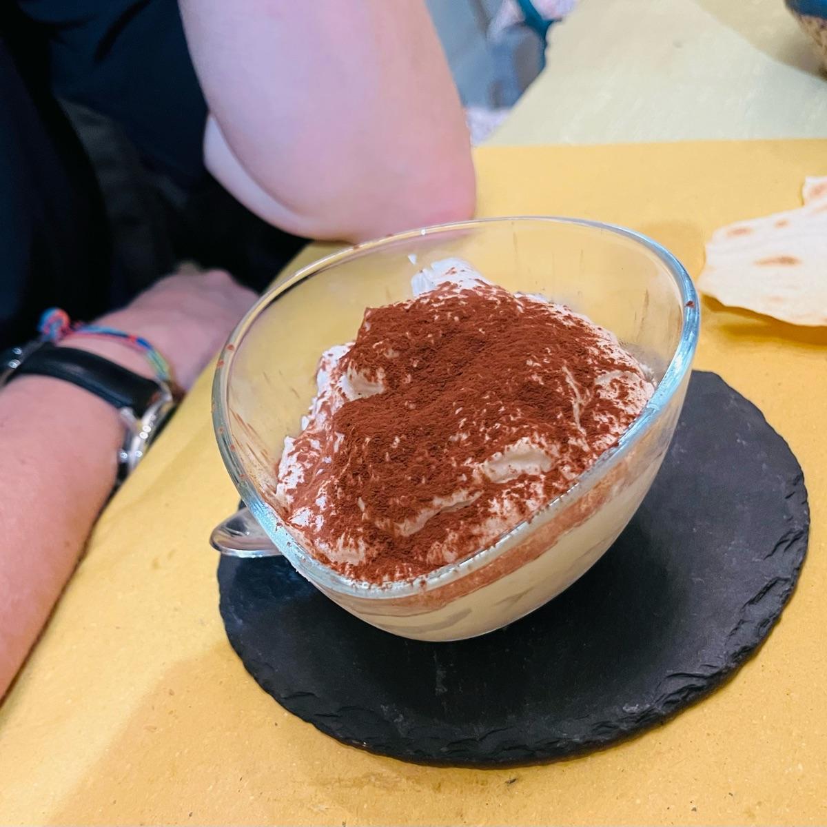 Il tiramisù vegano al caffè e cacao amaro, viene 6€. A me non è sembrato così speciale, poco sapore di caffè forse e il biscotto non mi ha entusiasmata.