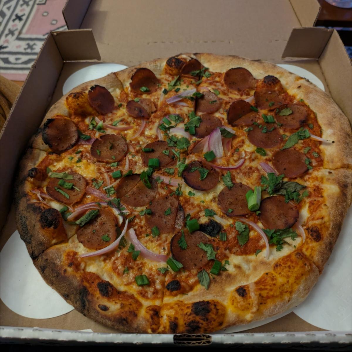 This pizza is SOOO GOOD. I probably get one like twice a month. The cheese is gooey and delicious, the pepperoni has a great flavor and texture, and the red onions are such a nice addition. Not to mention the crust. 10/10!