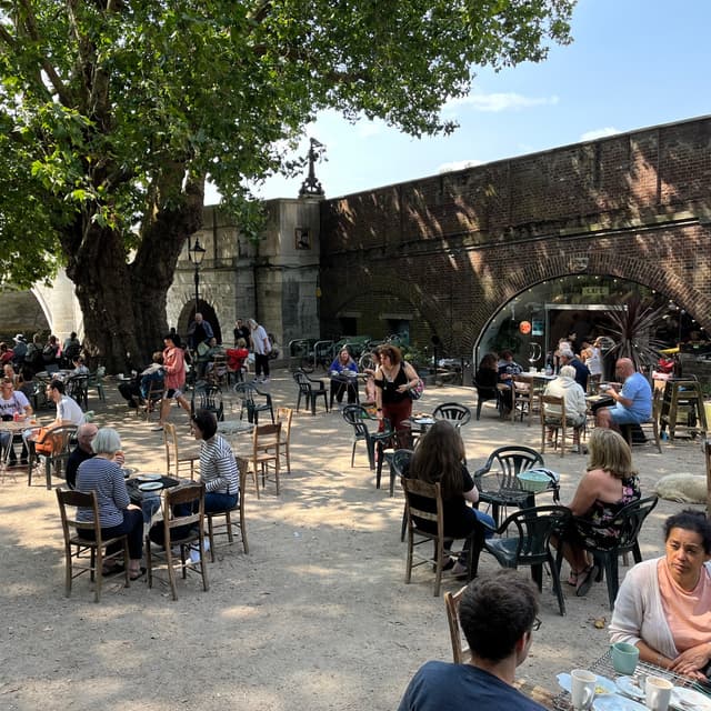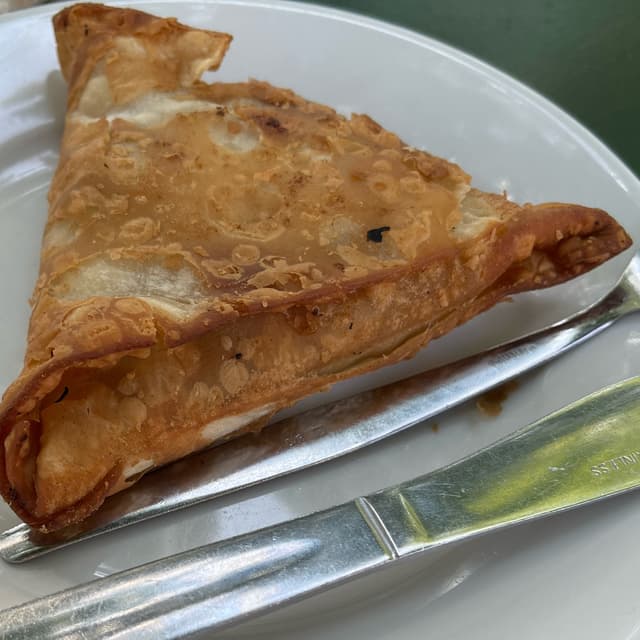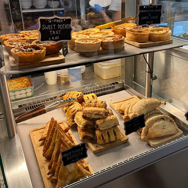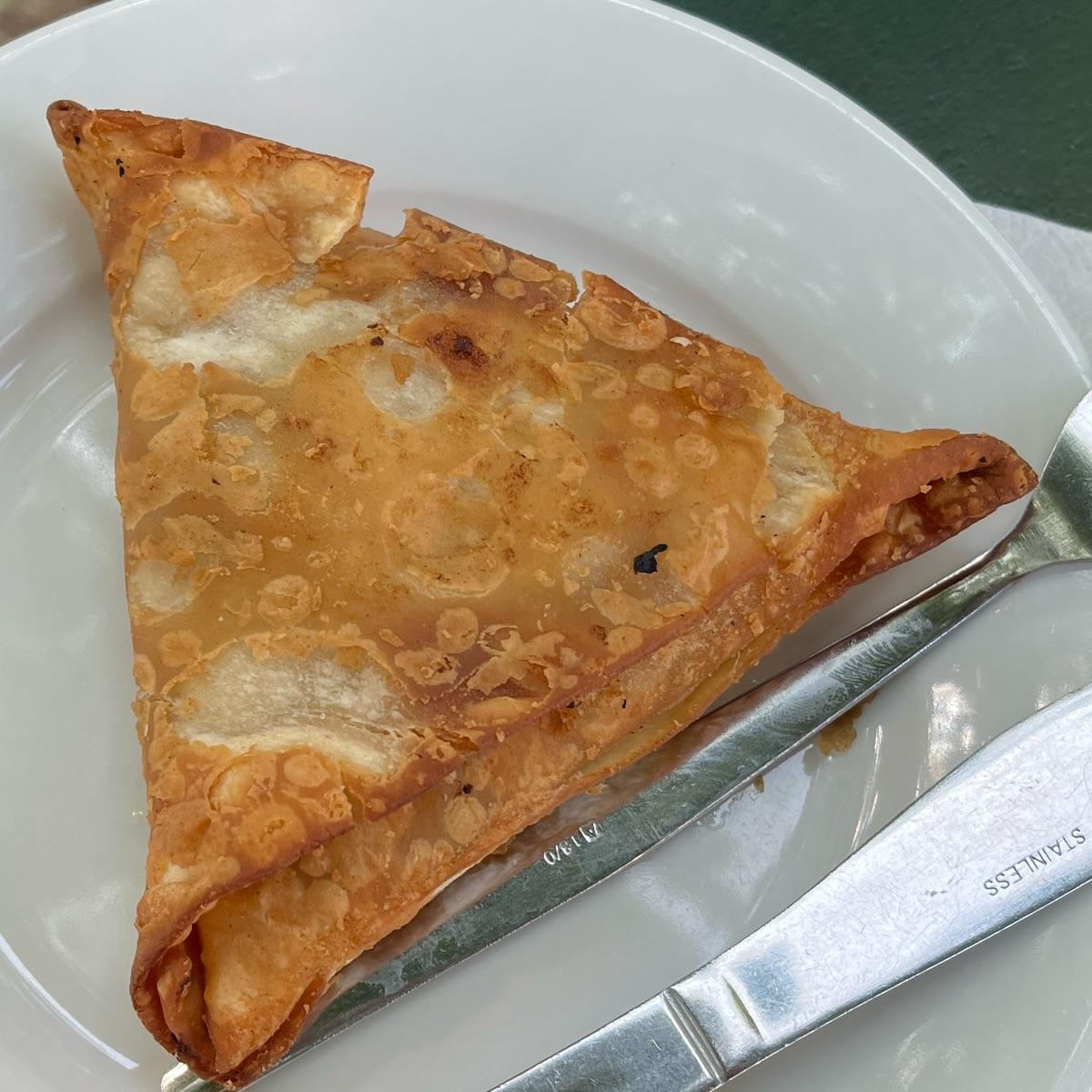 Meh. This was our least favorite of all we tried here. It was an ok #samosa with chunks of 🥔 #potato #carrot and #peas 🥕🫛inside but there just wasn’t much flavor or seasoning and it was rather bland. I was expecting more spices for a samosa which is typically Indian. All in all this place has lots of #plantbased 🌱options so is very #veganfriendly. If you are in Richmond it’s a perfect place to stop on a dry sunny ☀️day to enjoy the shade🌳 and river 🛶views. This is a vegetarian cafe so look for the vegan symbol to find savory and 🧁sweet treats. #veganlondon #londoneats