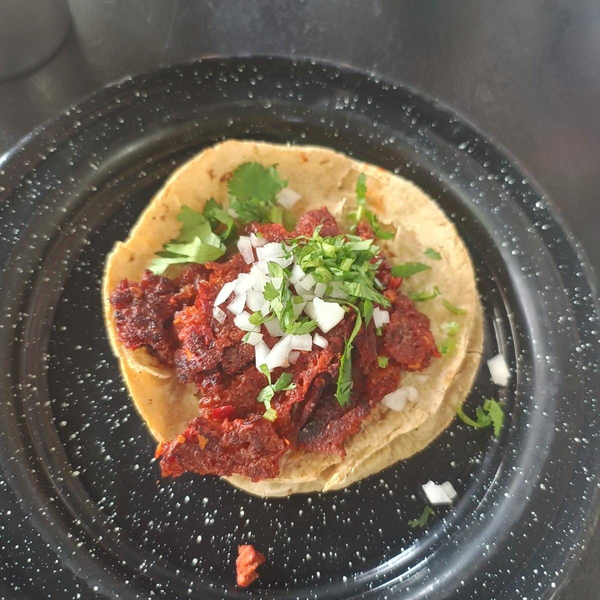 Traen doble #tortilla aunque no es necesario porque no viene tanto guisado como para que se te "derrame", eso sí le pondría un poco más para ser el #taco perfecto.