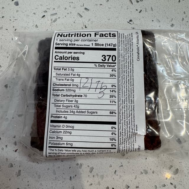 I have never had anything I didn’t love at #cinnaholic …. So I was excited to try the #chocolatechip #bananabread … thumbs up … delicious… I gave it minus one star for burnt edges… but I would definitely buy it again.