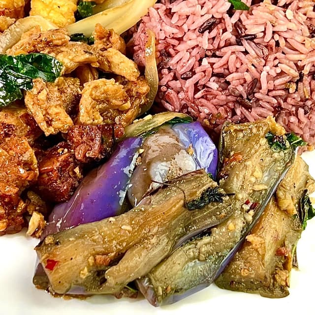 #basileggplant #chineseeggplant #panasianfood #panasiancuisine #veganpanasian #bipocwomanowned #supportasianbusinesses #asianowned #supportveganbusiness #pdxvegan