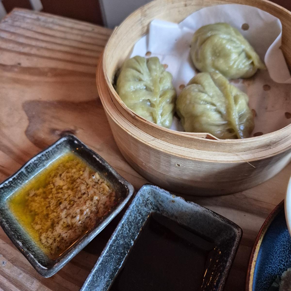 Jiaozi with pointed cabbage, served with one garlic sauce and one soya sauce. Good, but not the best I've had. A bit bland in flavor.