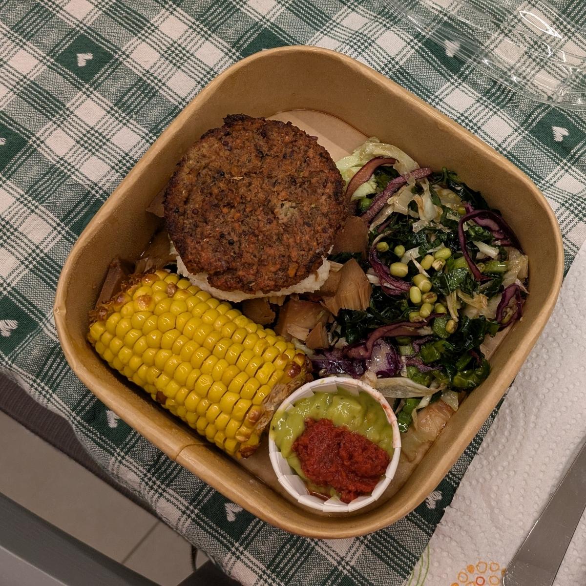 Piatto assaggiato da asporto ed era gustosissimo oltre che completo e nutriente. Questo locale è davvero ottimo sia per gustare qualcosa di particolare sia per mangiare piatto bilanciati quando non si ha tempo di cucinare qualcosa di nutriente. Buonissimi i due burger che diventano bun in questo caso. Molto particolare l'idea e riuscita benissimo