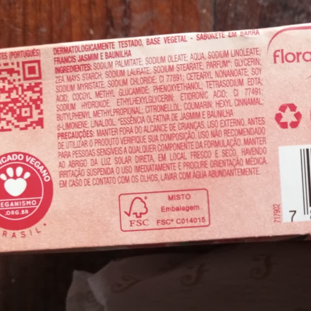 Sabonete em barra, vem em bonita caixa ecológica e tem o selo vegano. Faz bastante espuma cremosa e o perfume é muito bom.