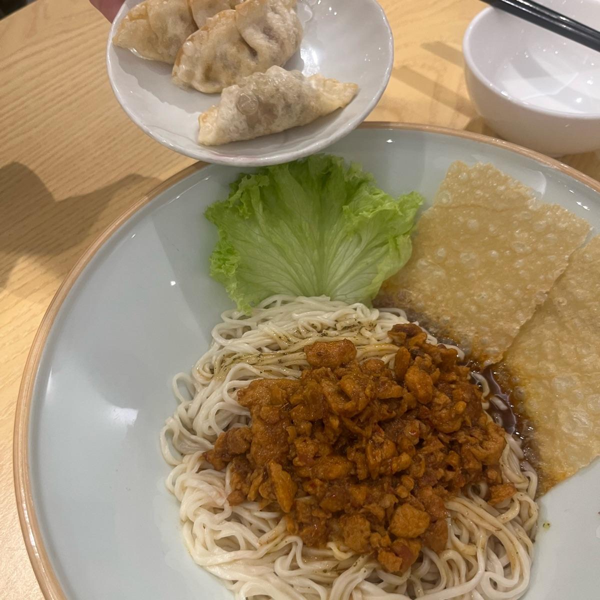 Pretty delicious stuff. Mildly spicy. Comes with a side of vegan dumplings. #dandannoodles #vegandumplings