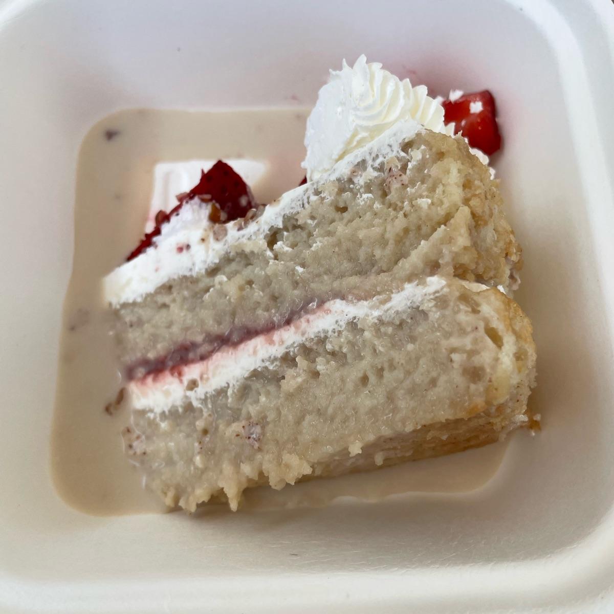 Me gustó mucho la masa. Un bozcochuelo súper esponjoso. Relleno con crema y frutillas