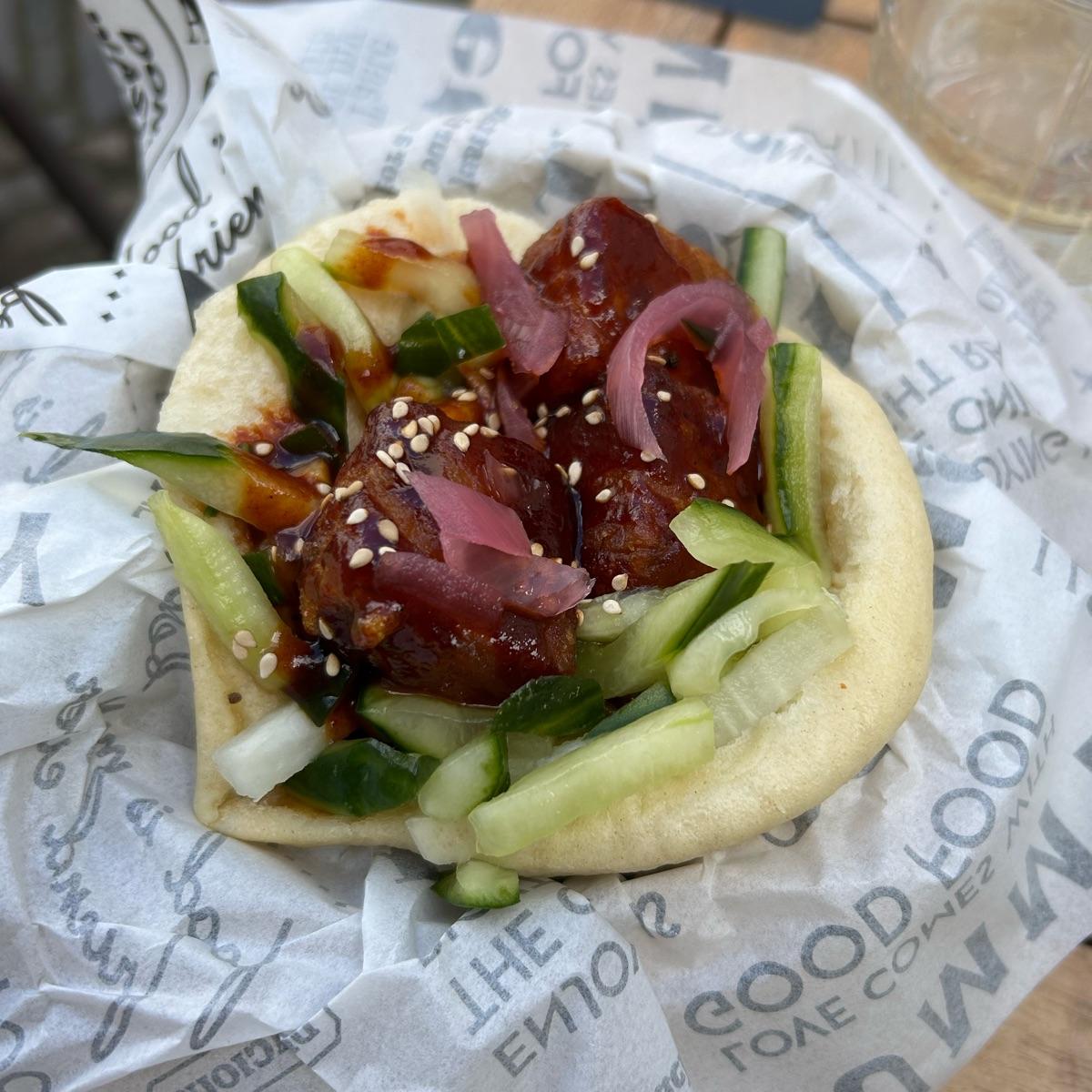 That’s right, I’m a bao-aholic. Can’t get enough:) This one contained nicely marinated gochujang tofu pieces, with lots of cucumber and pickled onions. It was super saucy, and became a bit soggy on the bottom at the end. Definitely not a date meal! It was really tasty though.