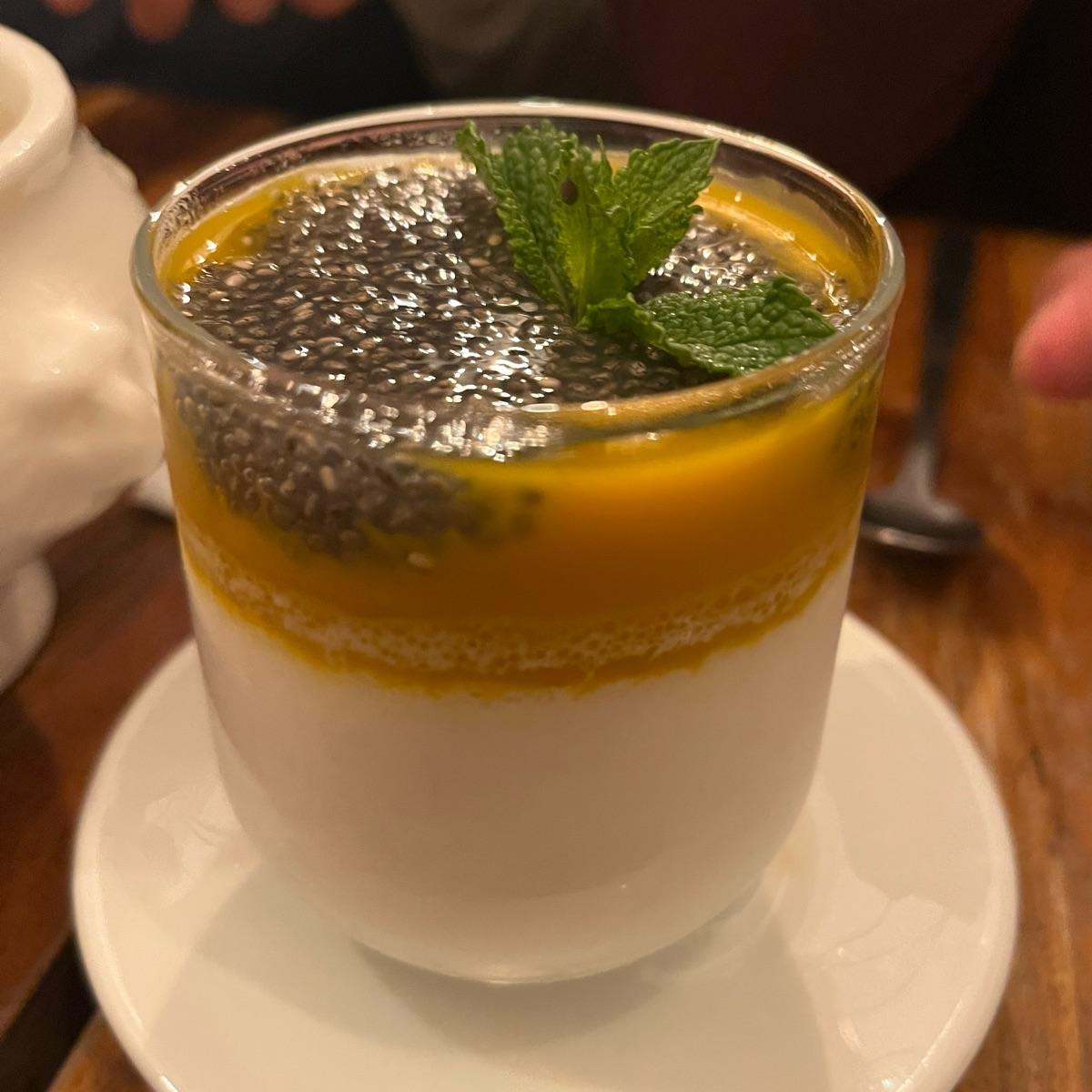 🇫🇷🇹🇭🥥🥭 Delicious #dessert at this #thai #veganrestaurant. It’s like a #pannacotta with #coconut and #mango with the healthy addition of #chiaseeds. €7 I preferred the warm coconut tapioca banana dessert though which was like heaven. Great place and food. Lovely service. #veganinfrance #paris #saveveganrestaurants